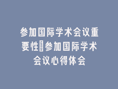 参加国际学术会议重要性_参加国际学术会议心得体会