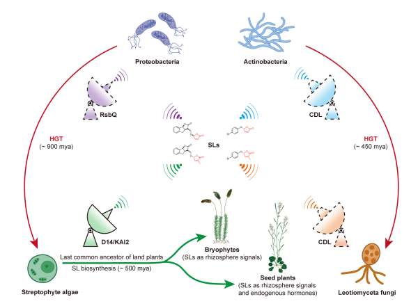 该研究不仅证明功能预适应基因的独立水平转移事件可以引发重大创新性状的趋同演化,还为跨界生物类群中独脚金内酯信号系统的起源与演化提供了新见解。