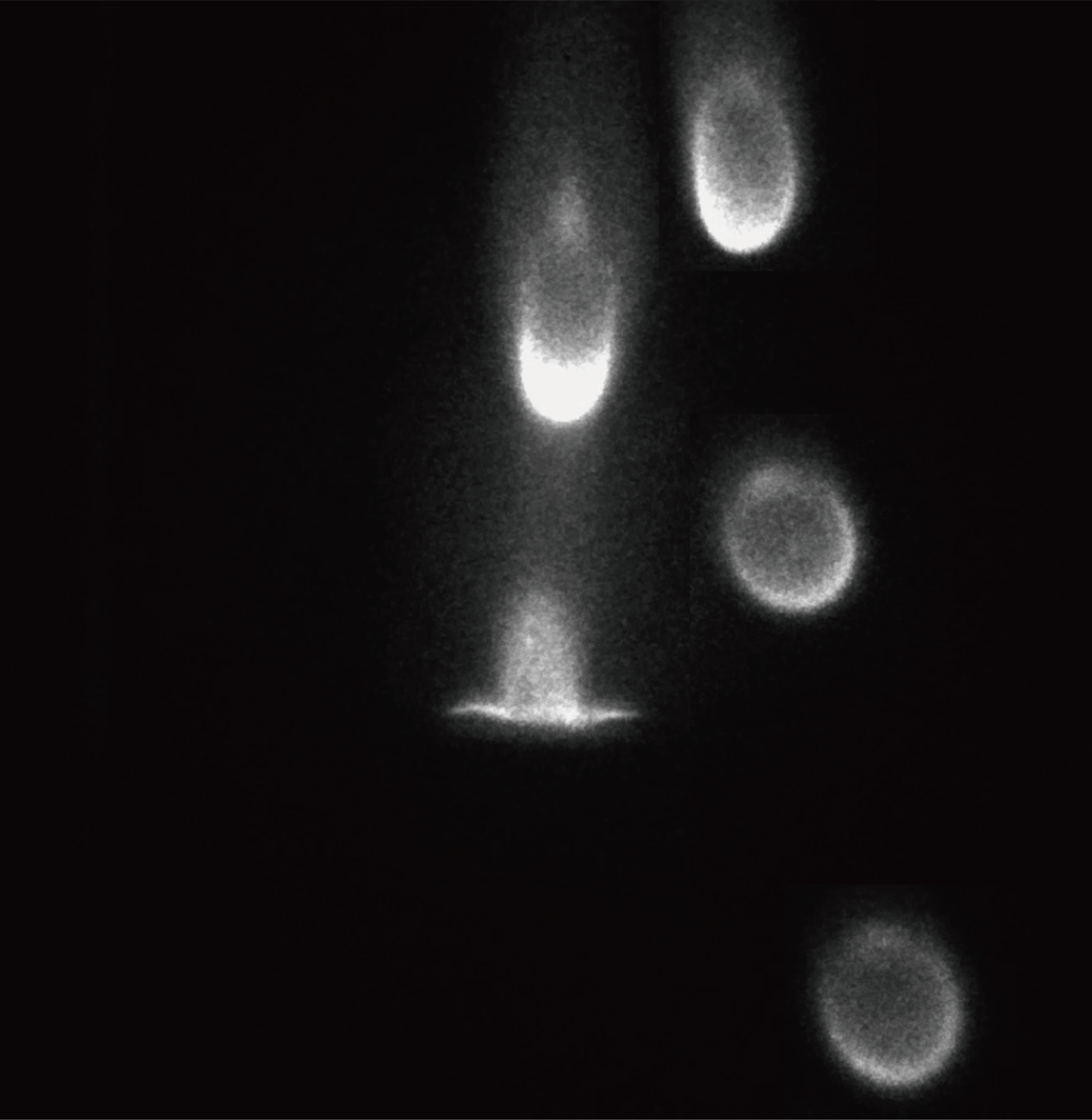 该项目聚焦的火焰合成技术,具有一步连续合成、设备结构紧凑、材料适应性广的独特优势,可在毫秒尺度内完成蒸发、燃烧、成核与生长,实现原子级别元素掺混,尤其适合空间原位资源利用中复杂组分、多元颗粒材料的一步制备。同时微重力环境消除了地面重力导致的浮力对流和沉降等影响,也为揭示燃烧与材料合成的底层物理化学机制提供了理想环境。研究团队为此次空间科学实验任务专门研制了“预混平焰+单液滴发生”的一体化燃烧器,历经18个月的在轨实验,圆满完成了预期的各项实验任务,首次在空间微重力条件下实现了自由飞行单液滴的稳定点火及燃烧,并首次在空间微重力环境实现了颗粒材料的气相合成,成功在轨收集到Al₂O₃与Y₃Al₅O₁₂颗粒,完成了从火焰结构调控到颗粒实际生成的完整验证链条。项目还发现了飞行燃烧液滴在微重力极端条件下的碰壁反弹机制,观测到燃烧或冷态液滴与高温金属采样板发生“热态反弹/冷态黏附”分化行为,揭示了类似“莱顿弗罗斯特效应”(Leidenfrost effect)的独特动力学行为。