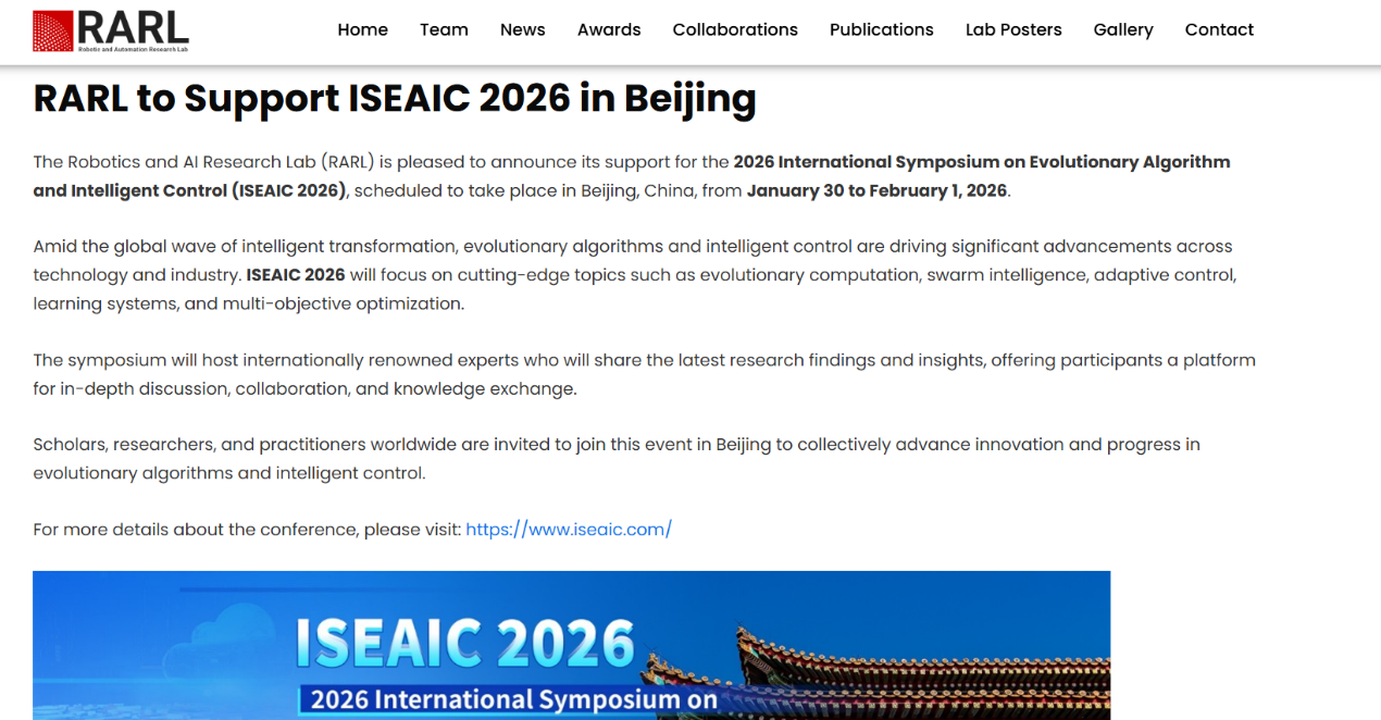 ISEAIC 2026已上线机器自动化研究实验室官网