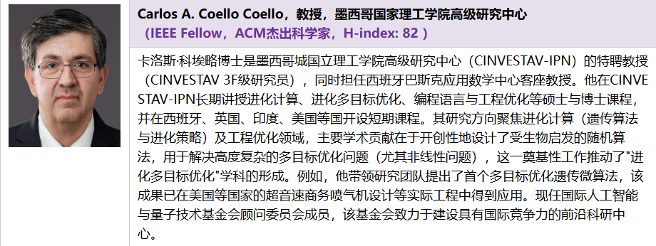 Carlos A. Coello Coello,教授,墨西哥国家理工学院高级研究中心(IEEE Fellow,ACM杰出科学家,H-index: 82 )