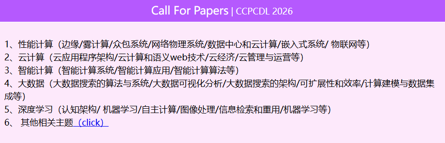 CCPCDL 已成功召开四届,第五届会议将继续深耕云计算、性能计算、深度学习等前沿研究领域,助力促进全球范围内的科学创新。CCPCDL 2026由南通大学主办,将通过链接国内外学术资源、聚焦技术前沿、推进生态协同,为学界同仁提供一个分享最新研究成果、理论进展和实践应用的学术交流与产业合作平台。欢迎广大专家、学者踊跃投稿参会!