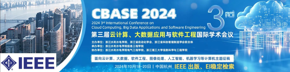 第三届IEEE云计算、大数据应用与软件工程国际学术会议 ( CBASE 2024 )将于2024年10月18-20日在中国杭州举办。该会议在连续两届成功举办的基础上,本届将由浙江水利水电学院、浙江省自动化学会、浙江省科协智能制造学会联合体主办,浙江水利水电学院信息工程学院承办,浙江水利水电学院电气工程学院、浙江理工大学信息科学与工程学院、AEIC学术交流中心协办。