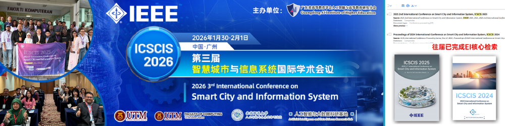 为了给该领域的专家学者提供交流,学习的平台,第三届智慧城市与信息系统国际学术会议 (ICSCIS 2026)将于2026年1月30-2月1日在中国广州举办。大会主要围绕智慧城市及其设计的信息系统技术展开讨论。大会诚邀国内外高校、科研机构专家、学者,企业界人士及其他相关人员参会交流。欢迎海内外学者投稿和参会。
