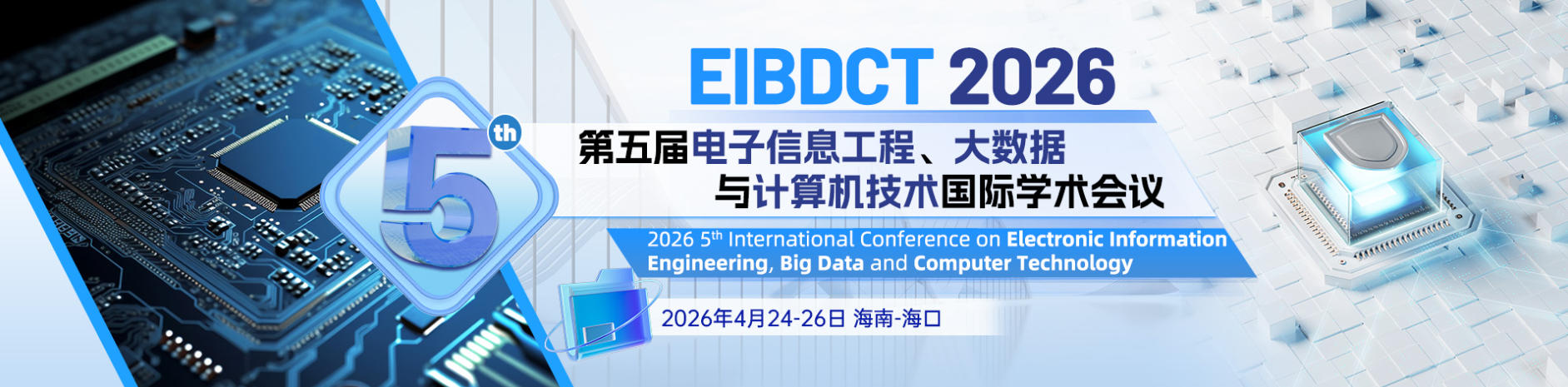第五届电子信息工程、大数据与计算机技术国际学术会议(EIBDCT 2026)即将于2026年4月24日至26日在美丽的海南海口市隆重举行。作为汇聚全球学术界和工业界精英的重要平台,EIBDCT 2026将继续致力于推动电子信息工程、大数据分析以及计算机技术领域的前沿研究与应用实践。