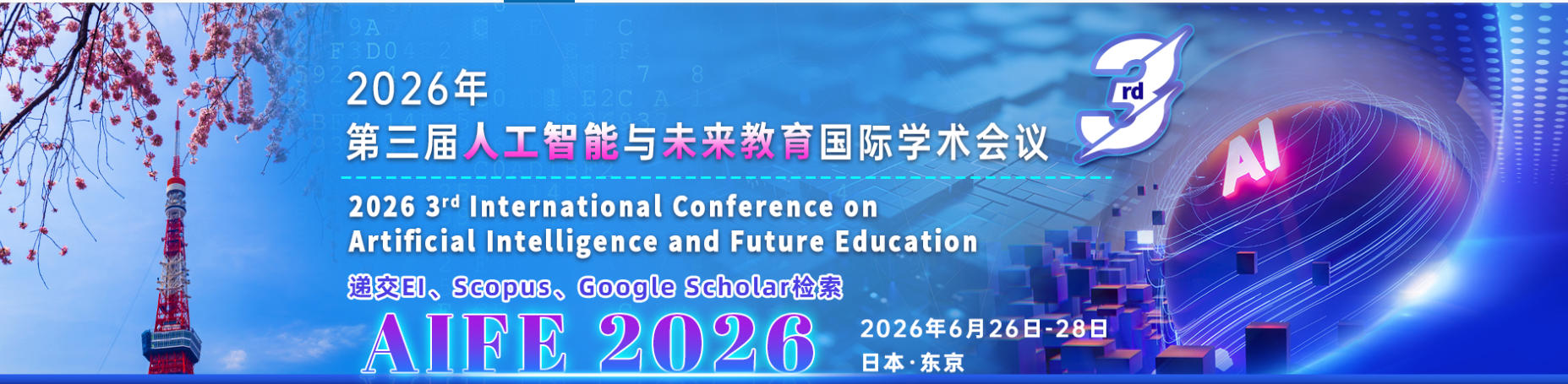 2026年第三届人工智能与未来教育国际学术会议(AIFE 2026)将于2026年6月26日至28日在日本东京隆重召开。本次会议旨在汇聚全球学者、教育技术专家以及人工智能领域的从业者,共同探讨人工智能技术在教育改革与创新中的应用,推动教育领域的研究与实践进步。会议主题围绕“智能教育与未来学习”展开,期望通过多样的主题讨论、学术报告和海报展示,深入探讨人工智能如何改变教育生态,适应个性化学习的需求,提升教学质量和效率。与会者将有机会分享前沿的研究成果、成功案例及应用经验,同时讨论未来可能面临的挑战与机遇。
