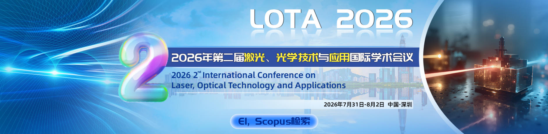第二届激光、光学技术与应用国际会议(LOTA 2026)将于2026年7月31日-8月2日在中国深圳召开。本届会议由深圳技术大学主办。