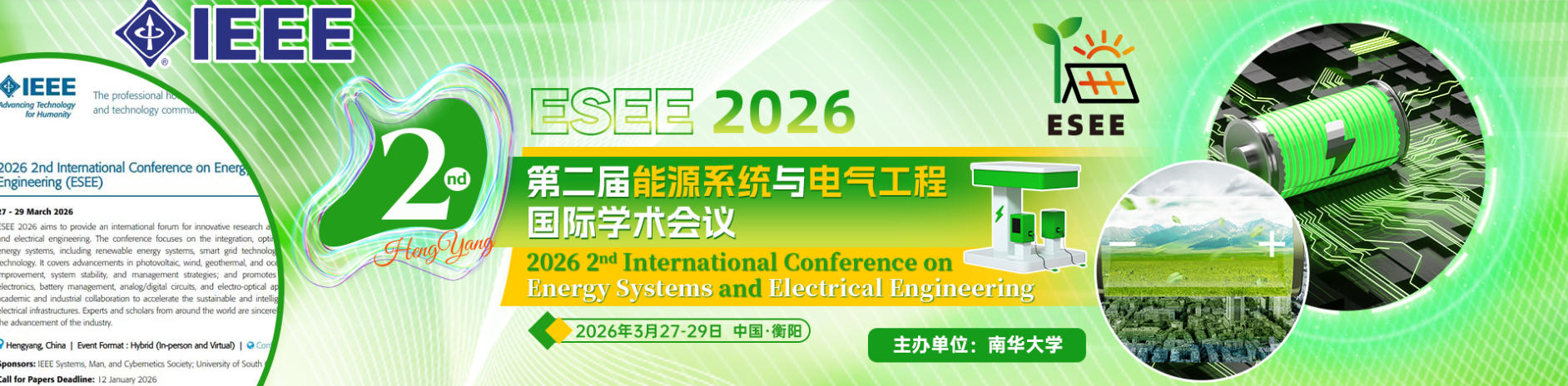 第二届能源系统与电气工程国际学术会议(ESEE 2026) 由南华大学主办,将于2026年3月27-29日在衡阳举办。