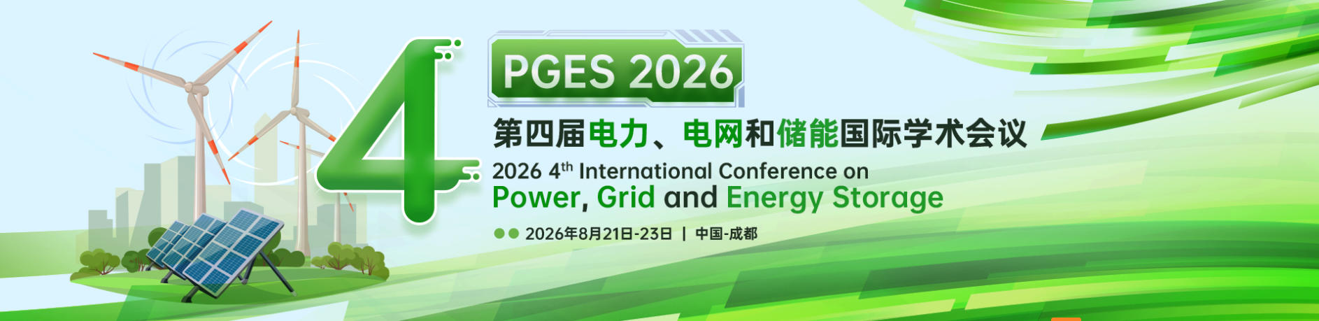 第四届电力、电网和储能国际学术会议(PGES 2026)定于2026年8月21-23日在中国西部创新高地——成都隆重召开。依托前两届会议成功培育的学术成果,本届会议深度对接国家"双碳"战略与成都市建设绿色氢都、智能电网示范城市的发展规划,聚焦新型电力系统、大容量储能技术、能源互联网等关键领域。