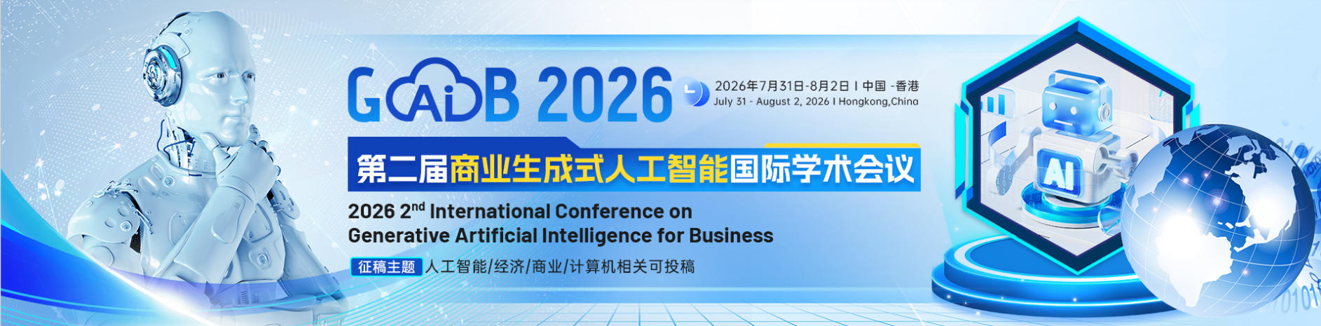 第二届商业生成式人工智能国际学术会议(GAIB 2026)将于2026年7月31日-8月2日于中国香港举行。会议将集聚全球顶尖学者、行业专家和企业领导者,深入探讨商业人工智能技术的前沿进展及应用挑战。大会旨在搭建一个跨学科的国际交流平台,促进学者间的深度对话,推动学术理论与商业实践的对接,从而提升人工智能在商业应用中的效率和效能。本次大会为学者提供了展示最新研究成果的机会。通过分享实践经验和过往案例,参会者将能够获得针对相关领域更为深刻的见解。大会的主要目的在于推动全球商业人工智能领域的创新与合作,加速技术落地和产业升级,为实现智能化的商业未来奠定坚实的基础。GAIB 2026诚挚邀请您共同迎接并创造商业智能时代的新篇章。