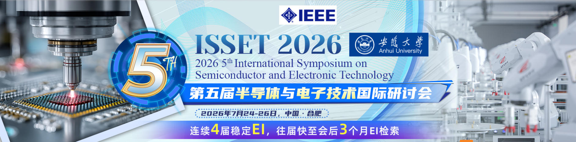 第五届半导体与电子技术国际研讨会(ISSET 2026)由安徽大学主办,将于2026年7月24日-26日在中国合肥举行。ISSET 2026将围绕“半导体”与“电子技术”等相关最新研究领域,为来自国内外高等院校、科学研究所、企事业单位的专家、教授、学者、工程师等提供一个分享专业经验,扩大专业网络,面对面交流新思想以及展示研究成果的国际平台,探讨本领域发展所面临的关键性挑战问题和研究方向,以期推动该领域理论、技术在高校和企业的发展和应用,也为参会者建立业务或研究上的联系以及寻找未来事业上的全球合作伙伴。