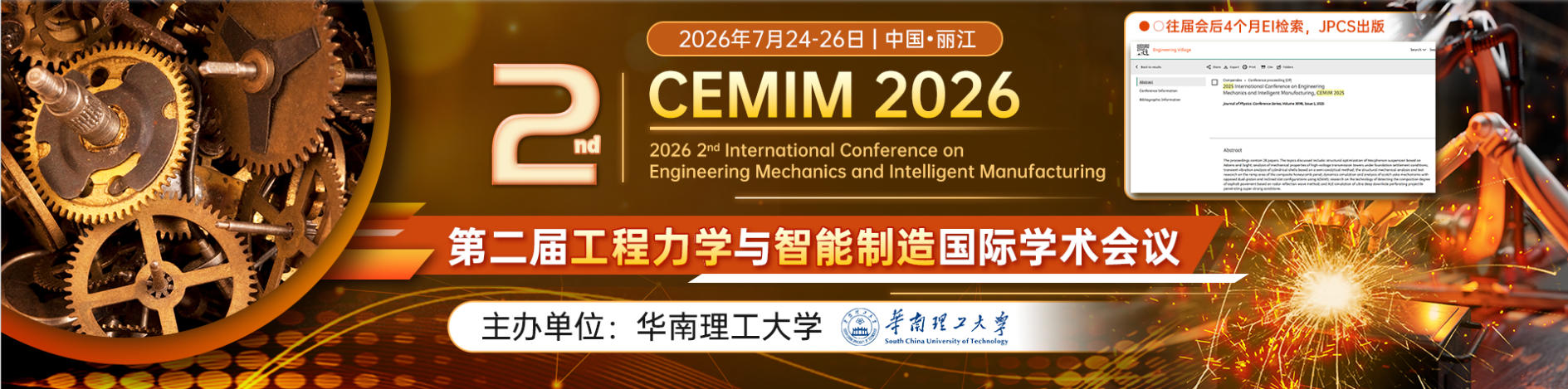 第二届工程力学与智能制造国际学术会议(CEMIM 2026)定于2026年7月24-26日在中国丽江举行。本次会议旨在为工程力学与智能制造领域的国际学术界和工业界专业人士提供一个交流创新思想、展示最新研究成果以及探讨未来发展趋势的重要平台。