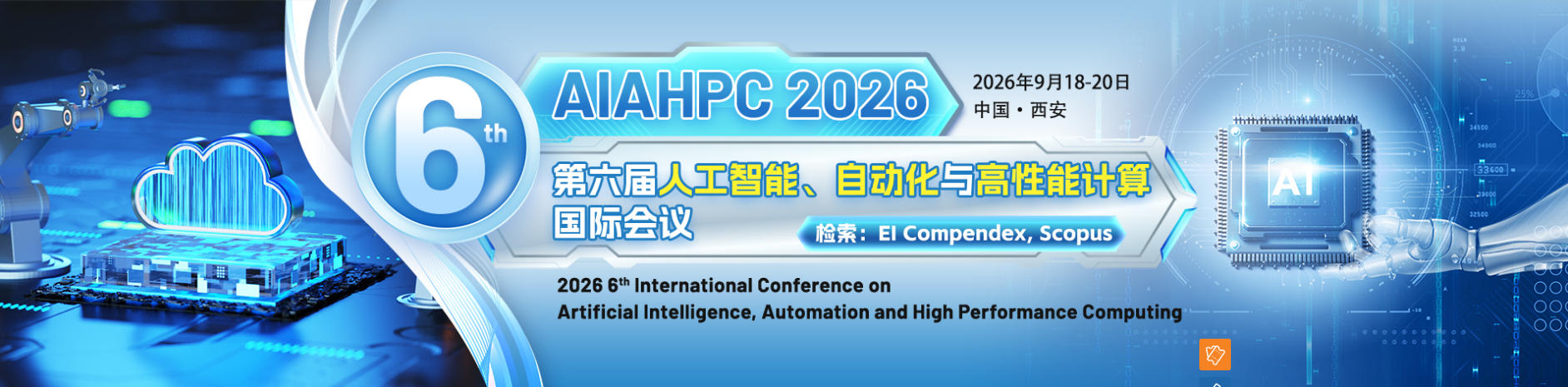 第六届人工智能、自动化与高性能计算国际会议(AIAHPC 2026)将于2026年9月18-20日在中国·西安召开。