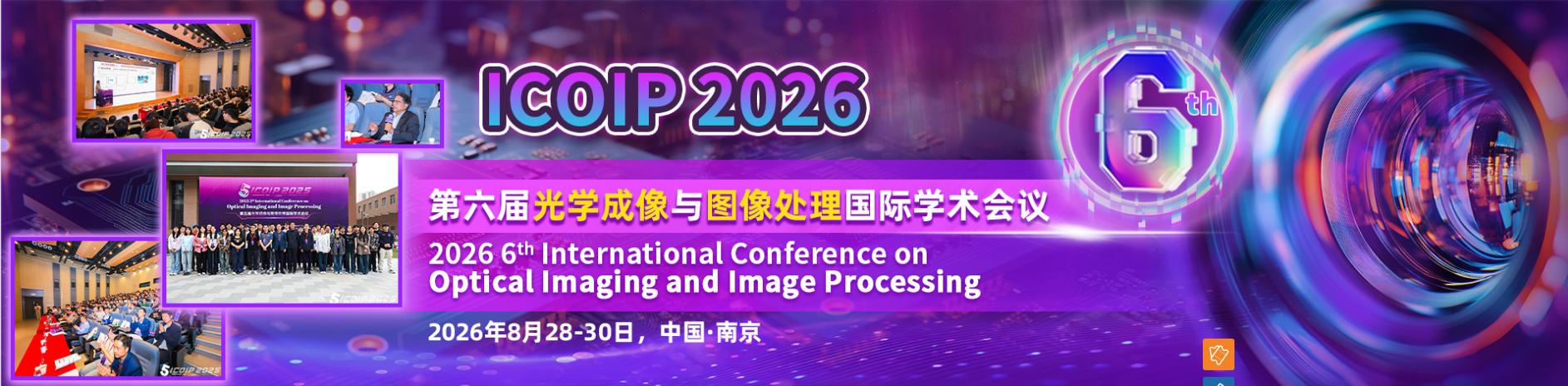 随着人工智能、大数据与新材料技术的迅猛发展,光学成像与图像处理技术在医疗诊断、智慧交通、安防监控、无人驾驶、虚拟现实等多个领域展现出巨大的应用潜力和市场需求。为进一步促进光学成像与图像处理领域的学术交流与技术创新,推动相关学科的建设与跨学科融合,第六届光学成像与图像处理国际学术会议(ICOIP 2026)将于2026年8月28-30日在中国南京市隆重召开。