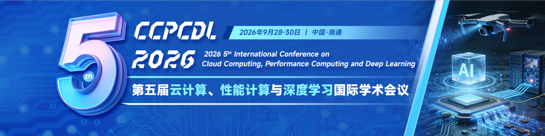 第五届云计算、性能计算与深度学习国际学术会议 (CCPCDL 2026)拟于2026年9月28-30日在南通召开。