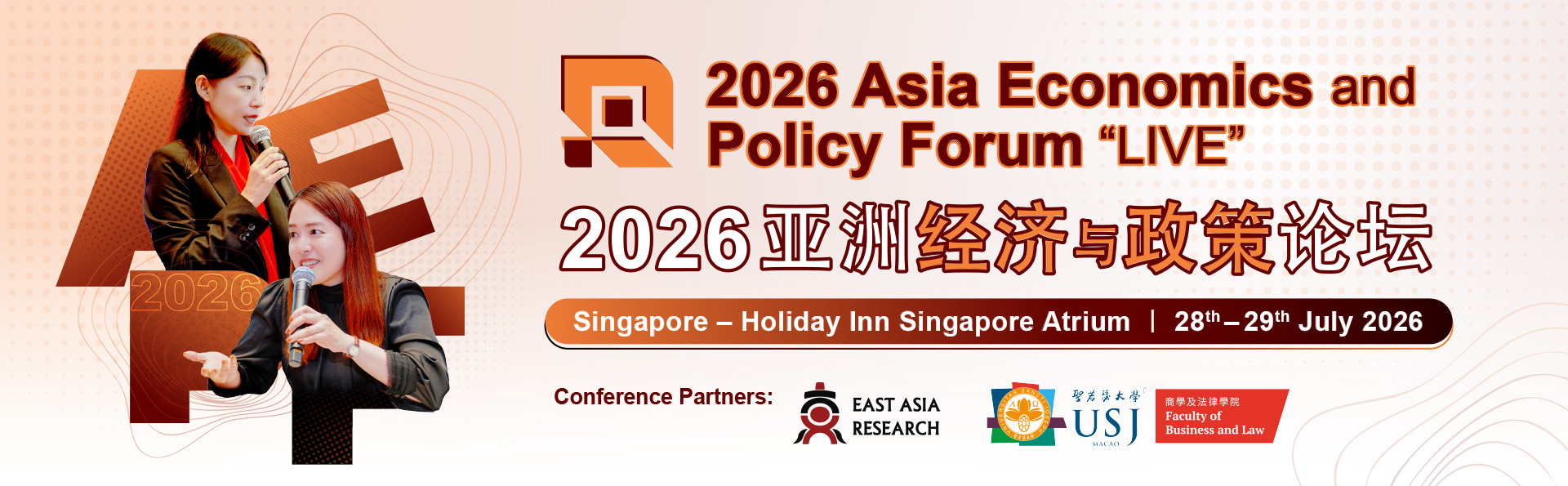 Asia Economics and Policy Forum (AEPF2026), organized by East Asia Research and supported by the Faculty of Business and Law at the University of Saint Joseph (USJ), Macao, will be a hybrid conference happening in Singapore from July 28-29, 2026.