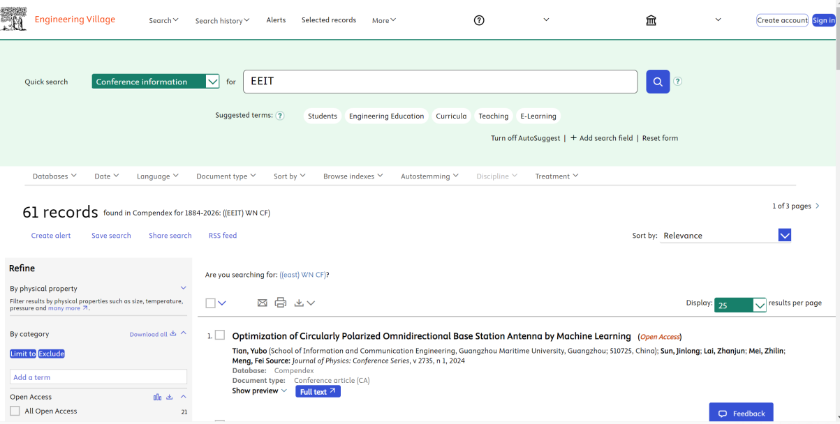 EEIT 2025提交将受到委员会的同行评审,接受的全文将被发表到 SPIE-国际光学工程学会(ISSN:0277786X)的论文集中 ,然后提交到EI Compendex和Scopus进行索引。