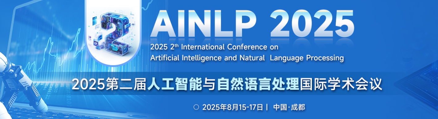 第二届人工智能与自然语言处理国际学术会议(AINLP 2025)将于2025年8月15-17日在中国·成都召开。本次会议主要围绕“人工智能与自然语言处理”的最新研究展开,旨在荟聚世界各地该领域的专家、学者、研究人员及相关从业人员,分享研究成果,探索热点问题,交流新的经验和技术。