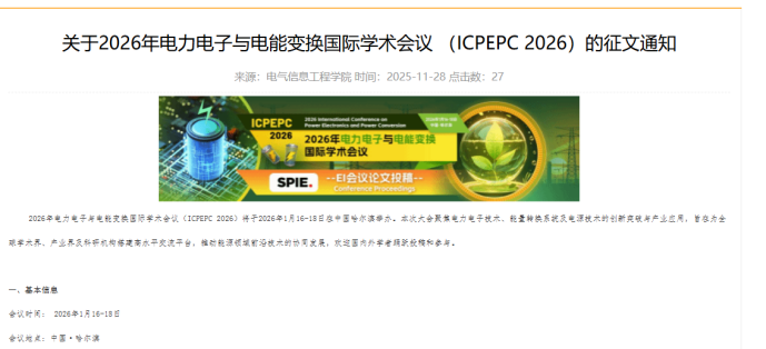 1、电力方向重磅会议!SPIE出版,稳定EI检索