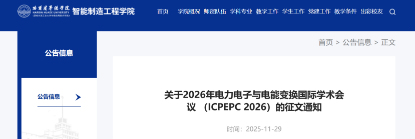 能源转换技术可以完成电能和其他能源的相互转化,是实现能源存储、转运及应用的一项关键技术。2050年全球可再生能源发电占比需提升至88%才能实现净零目标。以风能、光伏为代表的新能源具有间歇性特征,亟需通过电能转换技术(如逆变器、变流器、储能系统)实现能源高效并网与动态调节。2026年电力电子与电能变换国际学术会议(ICPEPC 2026)将于2026年1月16-18日在中国哈尔滨举办。本次大会聚焦电力电子技术、能量转换系统及电源技术的创新突破与产业应用,旨在为全球学术界、产业界及科研机构搭建高水平交流平台,推动能源领域前沿技术的协同发展,欢迎国内外学者踊跃投稿和参与。