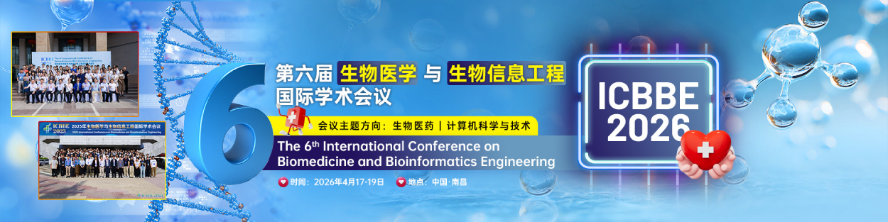 第六届生物医学与生物信息工程国际学术会议(ICBBE 2026)将于2026年4月17-19日在中国·南昌召开。本次大会主要围绕生物医学、生物信息工程两大工程领域展开研讨,为全球高等院校、科学研究所、企事业单位的专家、教授、学者、工程师等提供一个分享专业经验,扩大专业网络,面对面交流新思想以及展示研究成果的国际学术平台,目的是为了探讨相关领域发展所面临的关键性挑战问题和研究方向,以期推动理论和技术在高校和企业的发展与应用,同时也为参会者建立业务或研究上的联络,以及寻找未来事业上的合作伙伴。