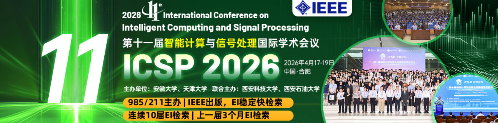 2026年第十一届智能计算与信号处理国际学术会议(ICSP 2026)将在合肥举行,会期是2026年4月17-19日,为期三天。