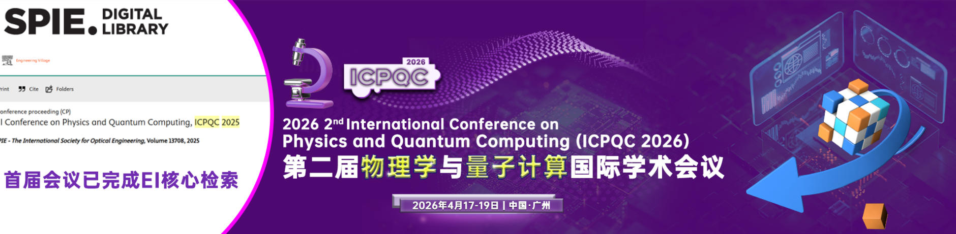 第二届物理学与量子计算国际学术会议(ICPQC 2026)将于2026年4月17-19日在广州举办。本次会议旨在汇聚全球的研究人员、学者和业界专家,共同探讨物理学与量子计算领域的最新进展与前沿挑战。随着量子技术的快速发展,其在信息处理、算法设计及材料科学等领域的应用潜力不断被挖掘,量子计算已成为当今科学研究的热门话题。此会议不仅是展示最新研究成果的机会,也是深入了解物理学与量子计算前沿技术和实际应用的良机。我们欢迎各界人士报名参加,期待来自全国及全球的专家学者与会分享与交流。