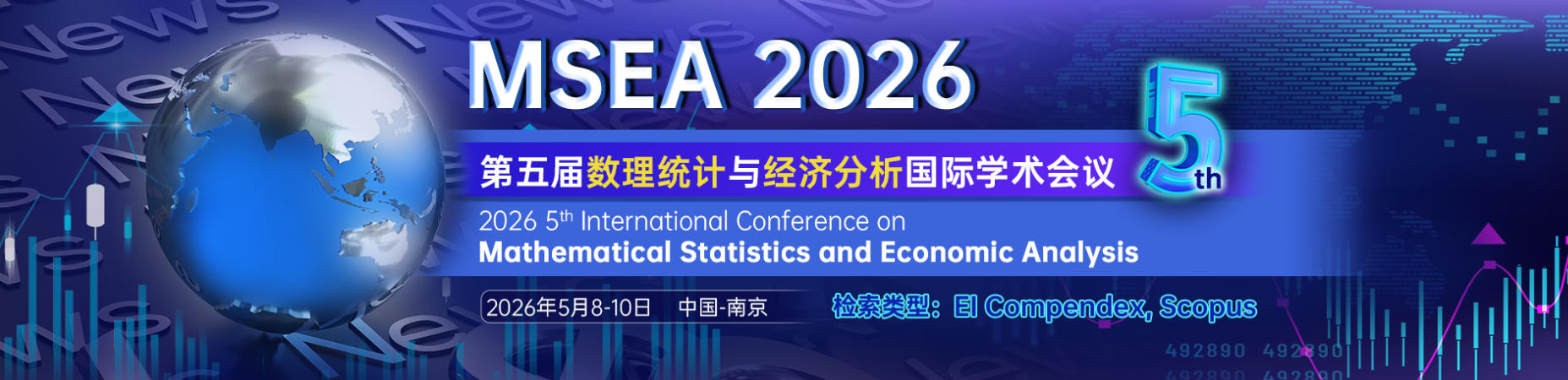第五届数理统计与经济分析国际学术会议 (MSEA 2026)将于2026年5月8-10日在中国南京召开。