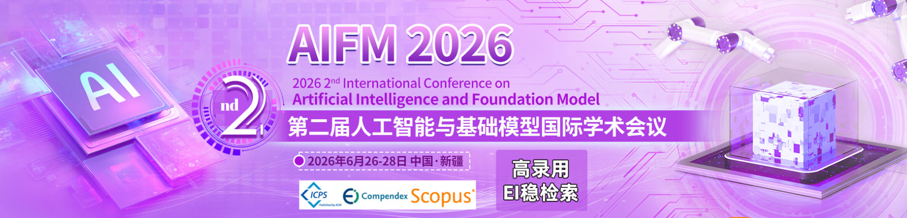 第二届人工智能与基础模型国际学术会议(AIFM 2026)由中国科学院新疆理化研究所主办,将于2026 年 6 月 28-30 日在中国乌鲁木齐盛大召开。这次会议是全球人工智能领域的重要学术盛会,旨在汇聚来自世界各地的学术界、产业界和政府机构的专家学者,共同探讨人工智能及其大模型技术的最新进展与未来发展方向。